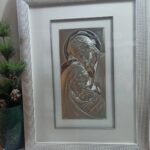 Obraz Matka Boska z dzieciątkiem, obraz srebrny na podkładzie z białej skóry z